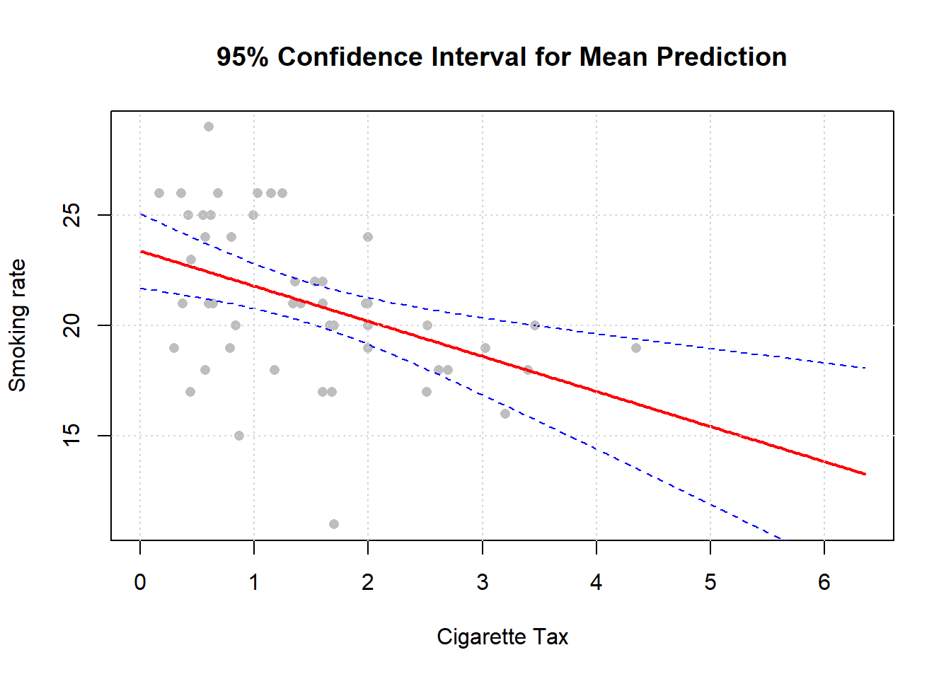 ylab = "Smoking rate", main = "95% Confidence Interval for Mean Prediction")