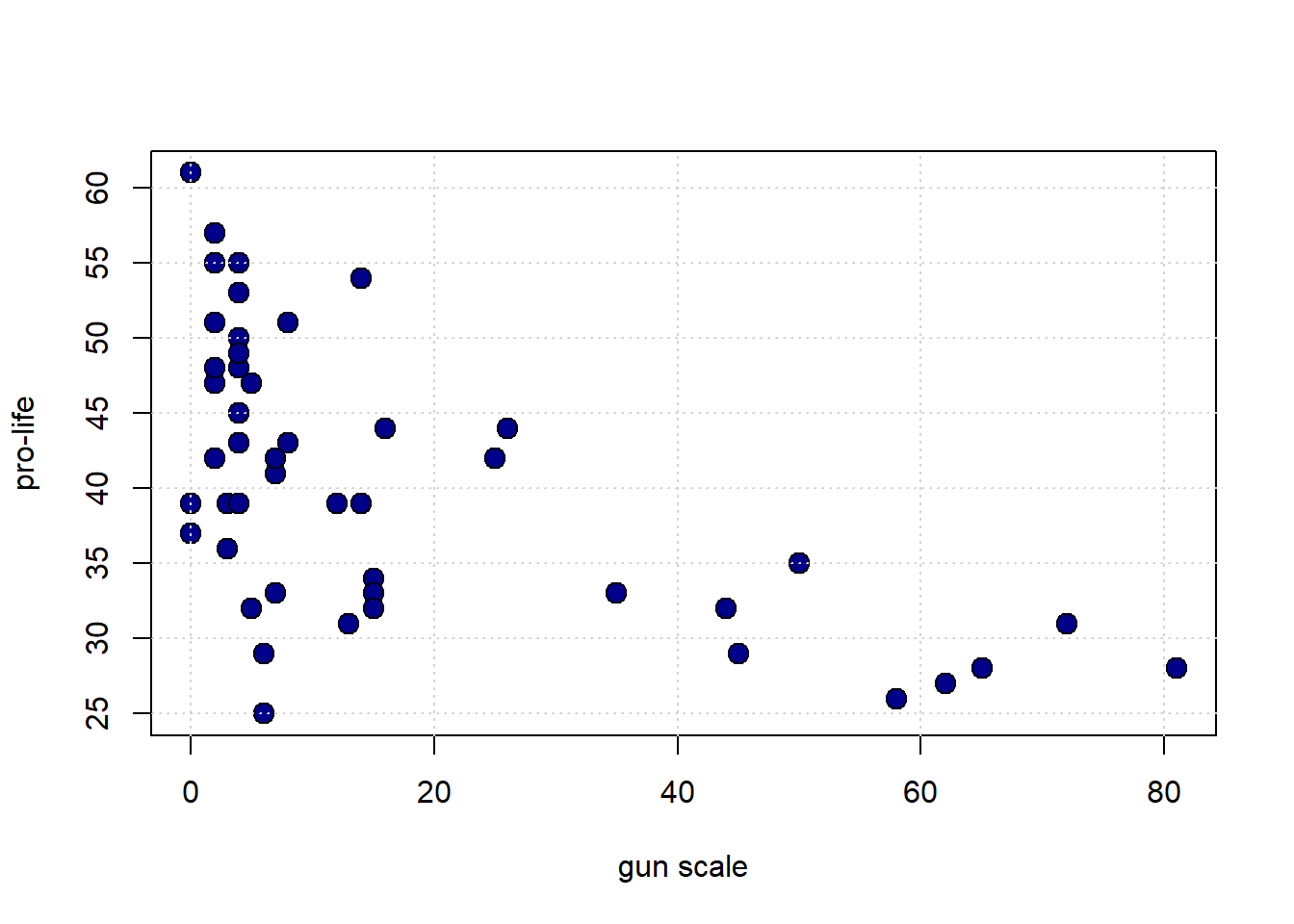 xlab="gun scale", ylab="pro-life")