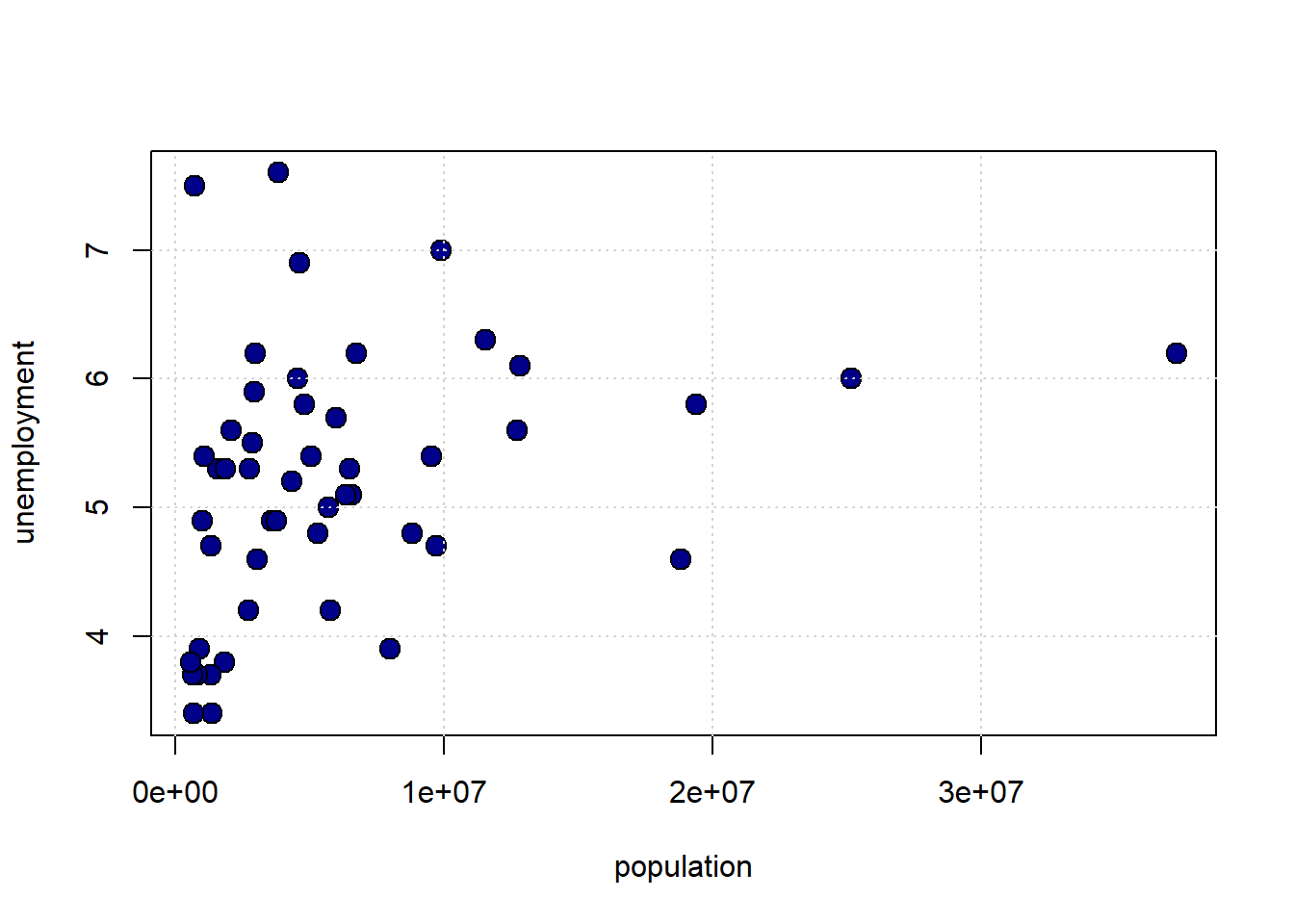 xlab="population", ylab="unemployment")