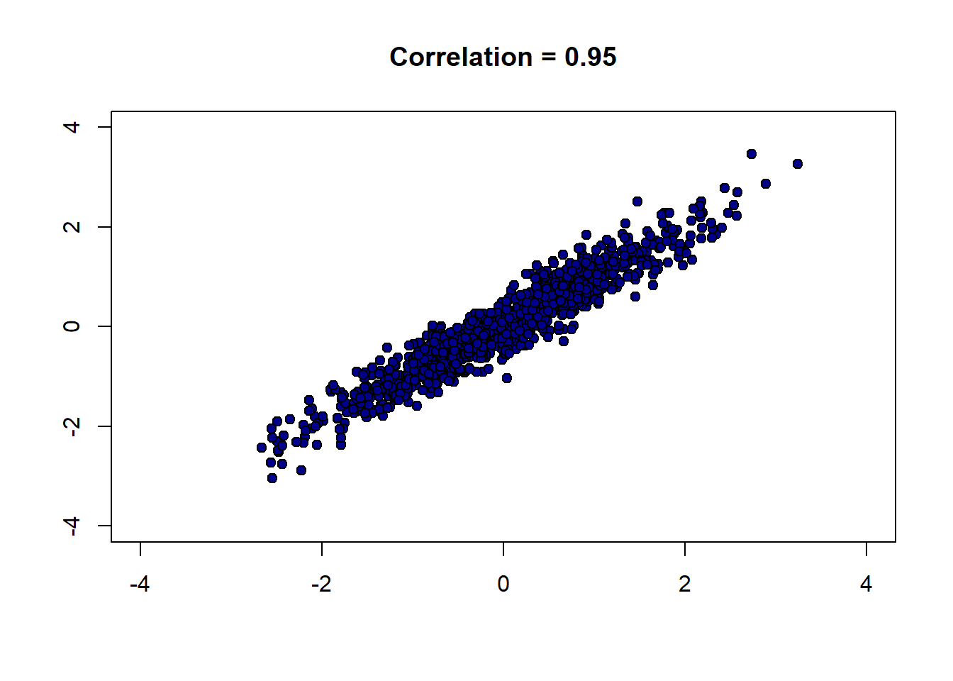 }Let’s start out with a strong, positive correlation like \(+0.95\):