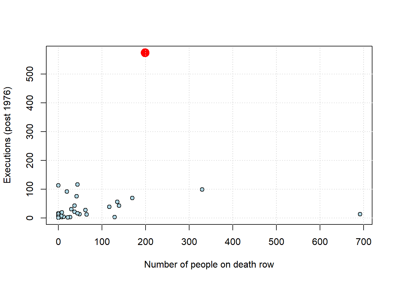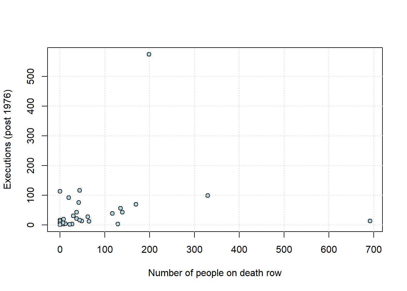 It is not hard to find other variables with different apparent associations. Let’s load up the states data—which has information on many variables from the US states—and take a look.