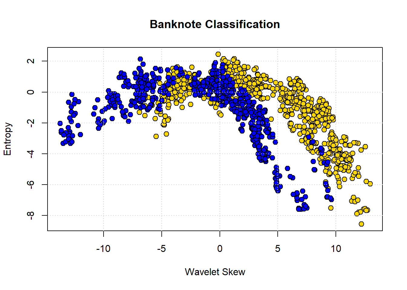 Ultimately, the goal is to use past relationship between \(X\) and \(Y\) to predict the future class of transactions. Of course, it may be somewhat helpful to know that a previous purchase should not be billed to the customer; but the immediate goal is to decline fraudulent purchases as they happen—and potentially act on that information by e.g. alerting law enforcement. With this in mind, ambiguous cases, i.e. cases where we cannot easily assign the correct category, take on special importance. Suppose, for example, the purchase was of alcohol, but not very expensive alcohol, yet far from the bank customer’s home. Should that be classified as legitimate or fraudulent? Making a mistake either way is obviously costly: someone gets away from stealing from the bank, or we end up calling the police on our customer. Such boundary cases are very difficult.