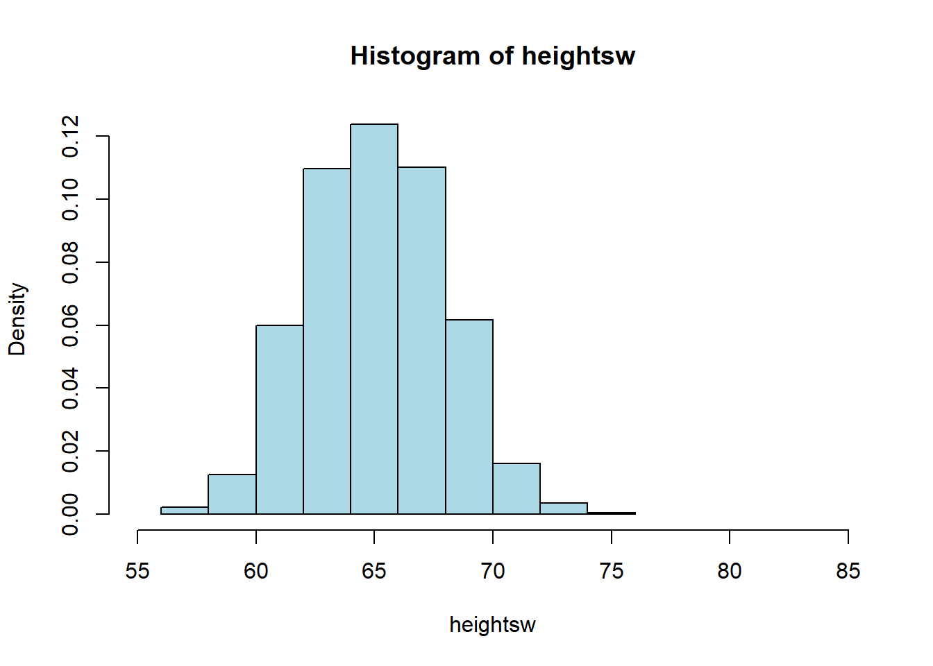 hist(resampled_medians, breaks=10, col="lightblue", xlab="resampled medians", main="")